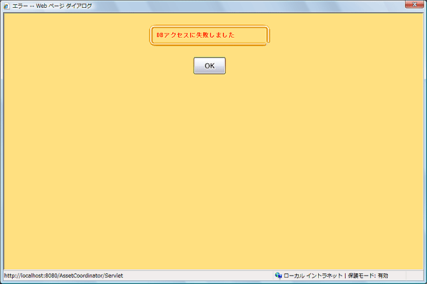 「DBアクセスに失敗しました」画面で「OK」を選択すると画面が閉じますので、引続き操作を行ってください。