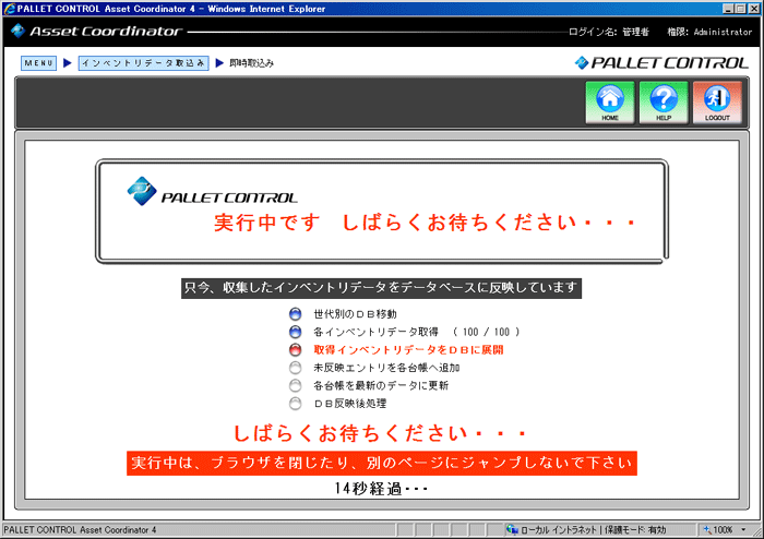 インベントリデータ即時取込み中の画面が正常に表示されません。