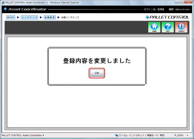 (8) 「登録内容を変更しました」という画面が表示されます。[OK]ボタンをクリックします。