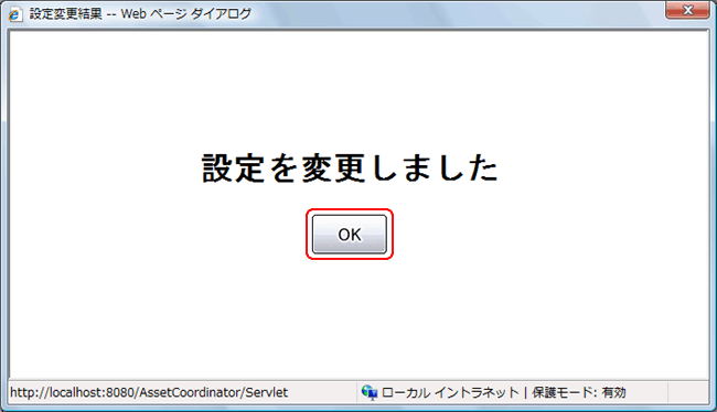 (7) 「設定を変更しました」という画面が表示されます。[OK]ボタンをクリックします。