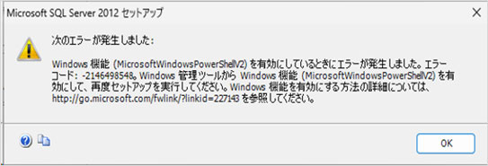 PowerShell 2.0 がインストーラーされていない PC で SQLServer 2012 をインストールすると、事象が発生