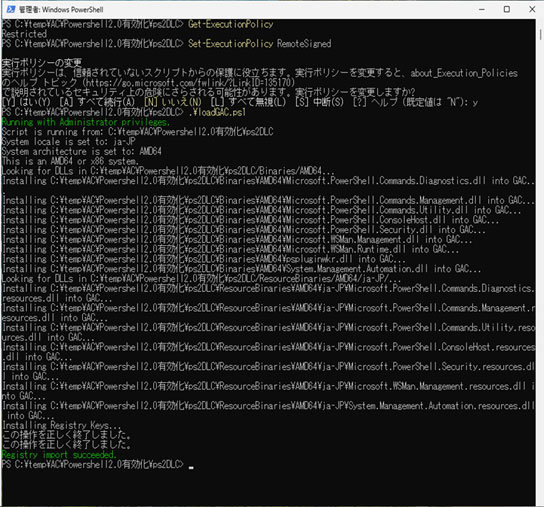 「2.」の手順に従って Powershell 2.0 をインストールします(実行ポリシーで Powershell スクリプトが実行できない場合は適宜変更が必要です)。