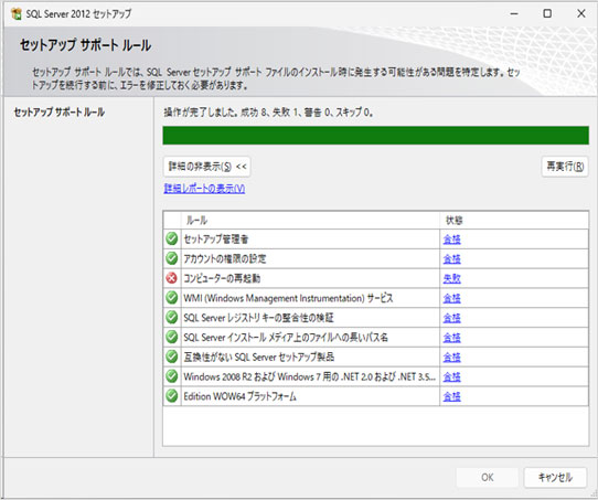 その場合は PC を再起動してから SQLServer インストールの再実行をお願いします。