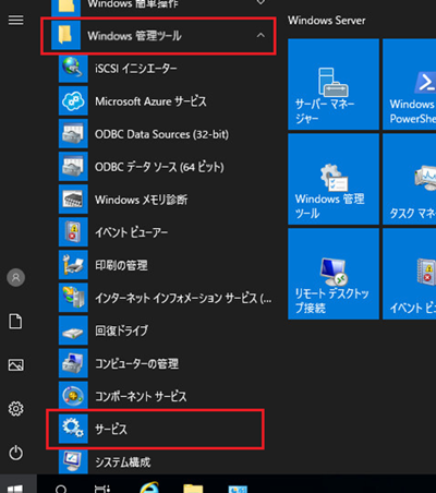 1. [スタート] > プログラム一覧の [Windows 管理ツール] > [サービス] をクリックします。